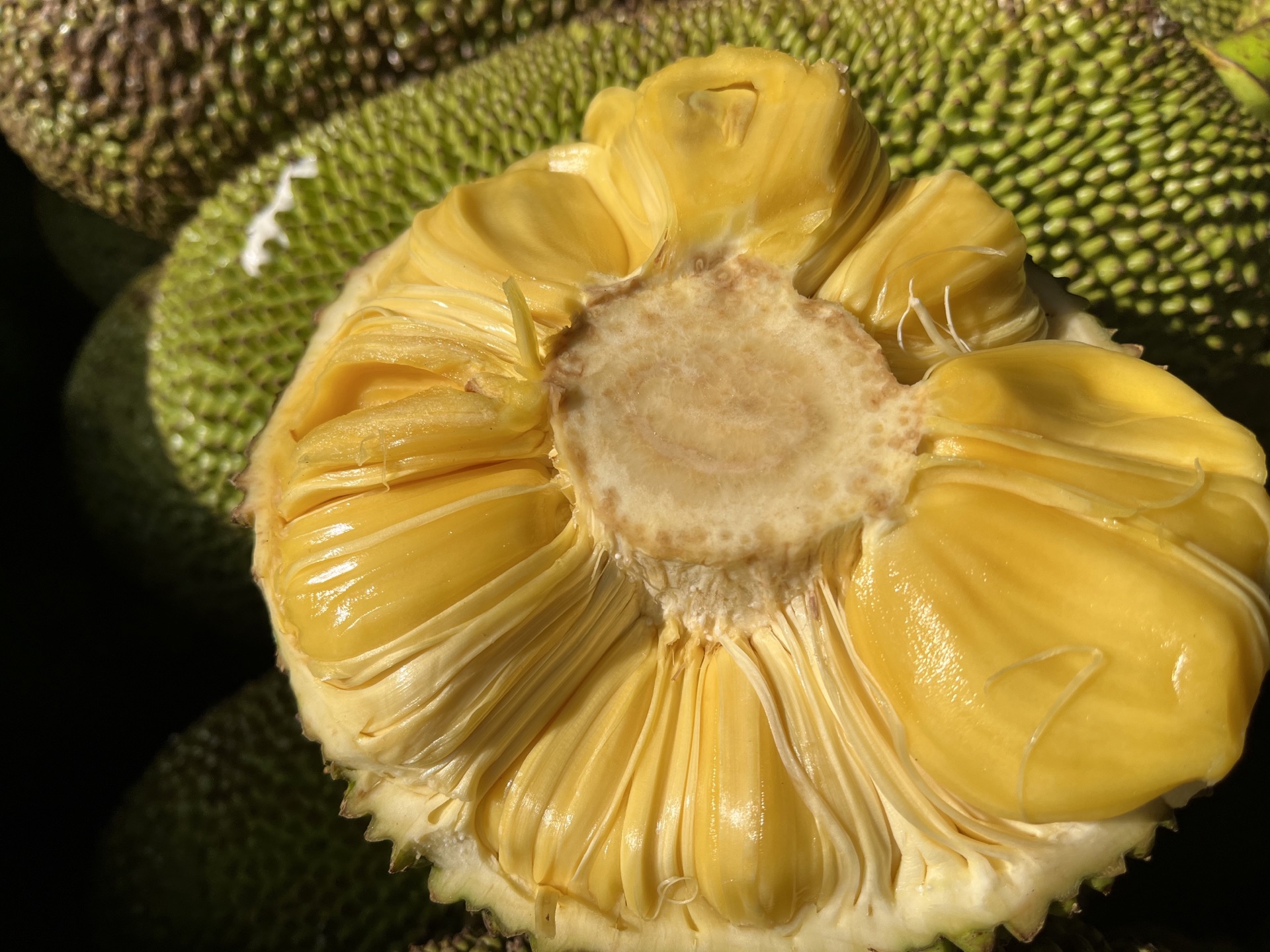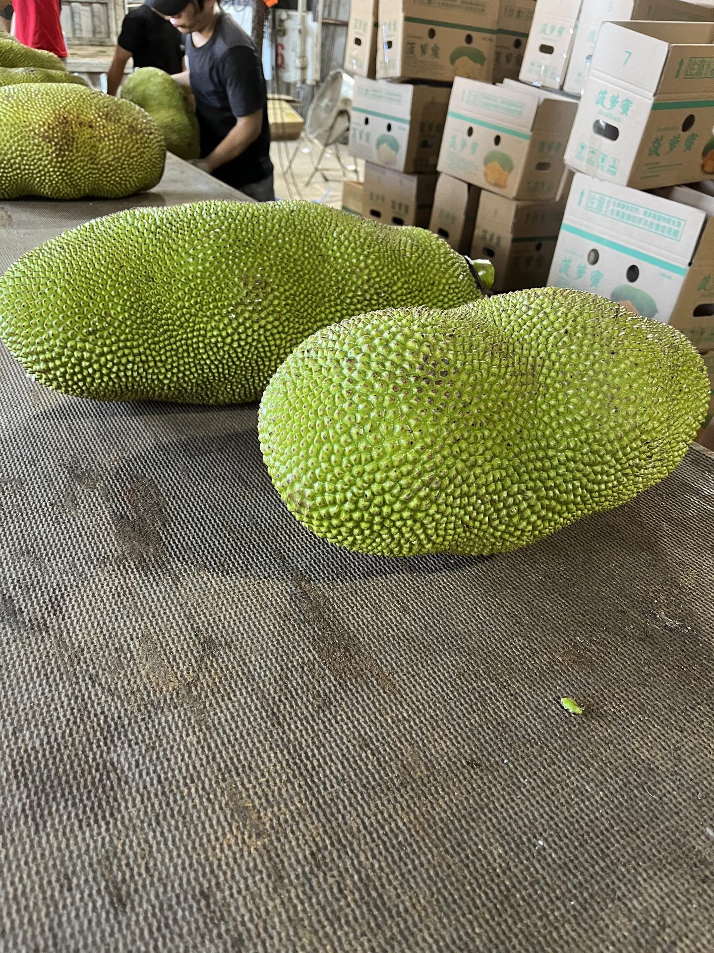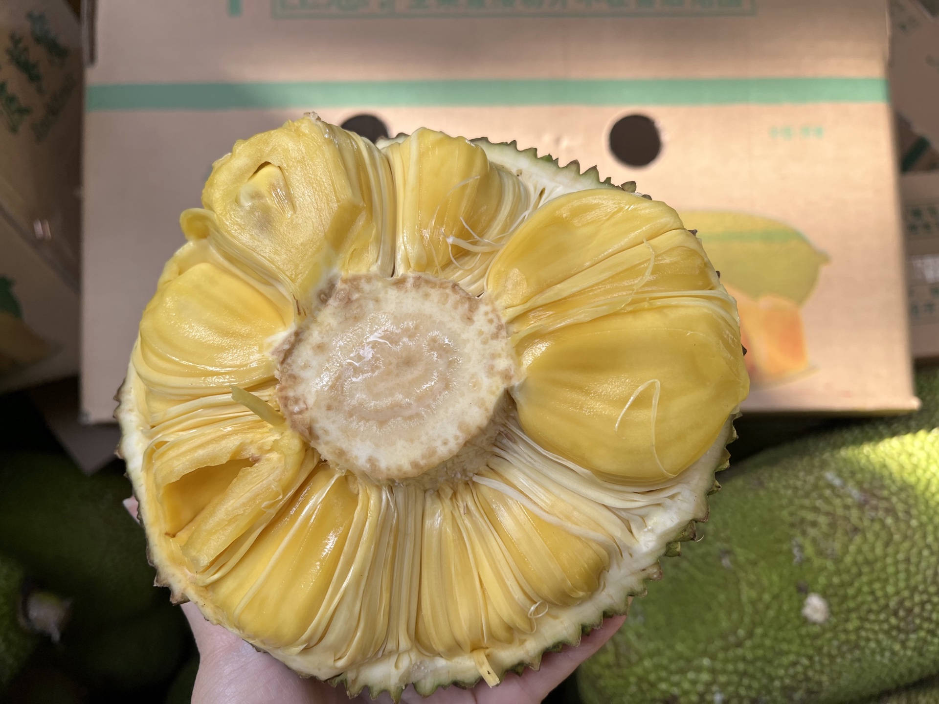 温馨提示:菠萝蜜到货一定要先判断生熟才能切,生切不赔。按压果皮软了代表成熟了,可以切个三角小口试下果肉,确定熟了再切开!