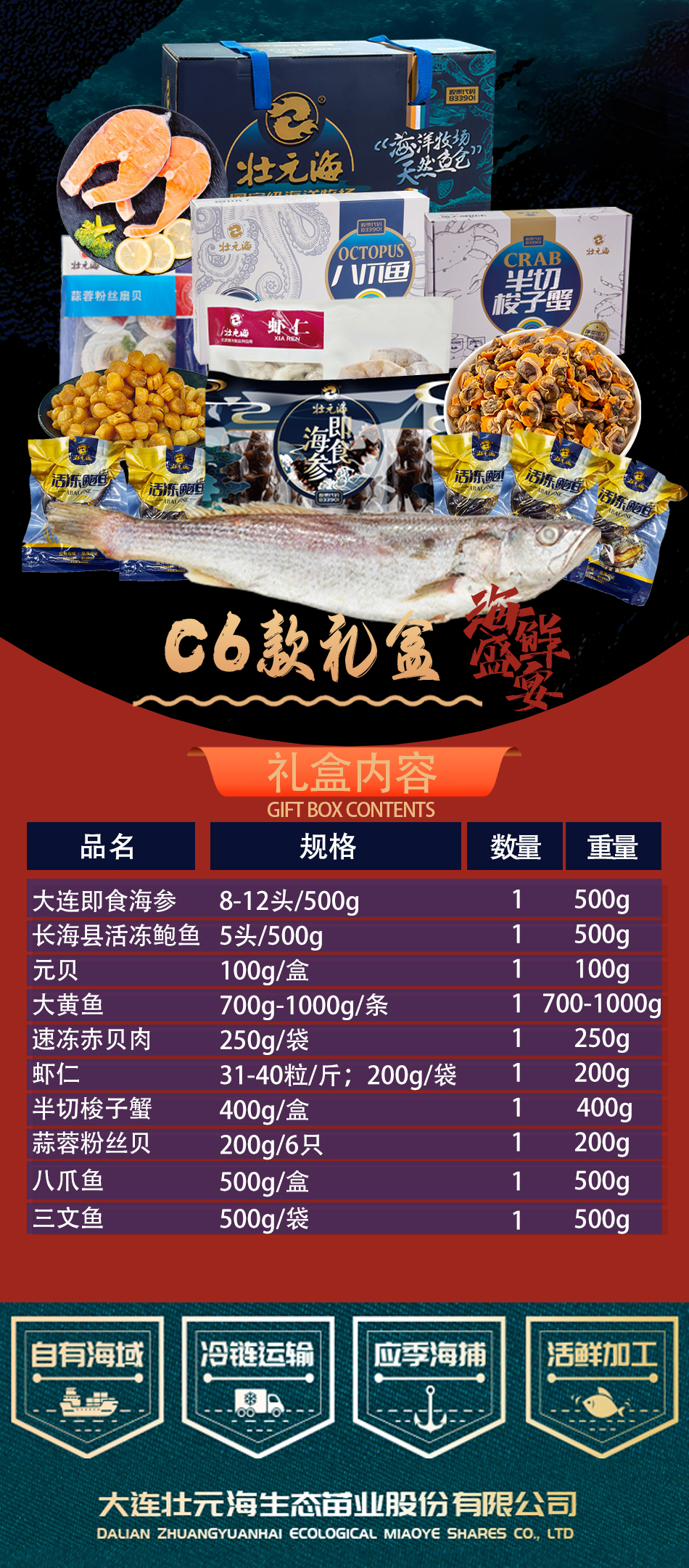 10样大连当地特色海鲜,产品重量8斤,主打大连海参 长海县大鲍鱼