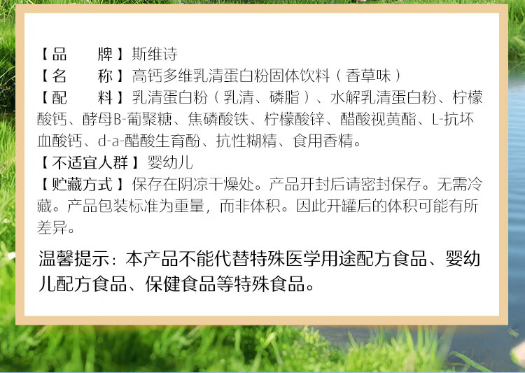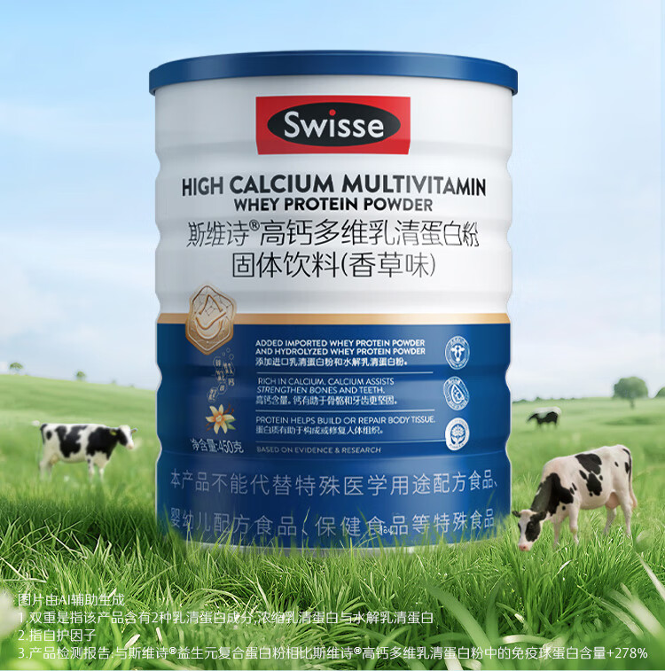 【云仓】Swisse 斯维诗高钙多维乳清蛋白粉固体饮料450g*2罐(礼盒装)