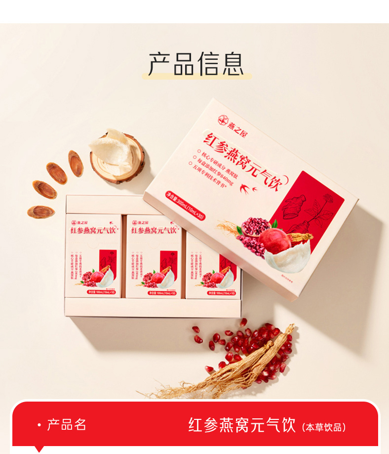 【云仓】燕之屋 红参燕窝元气饮10ml*30条