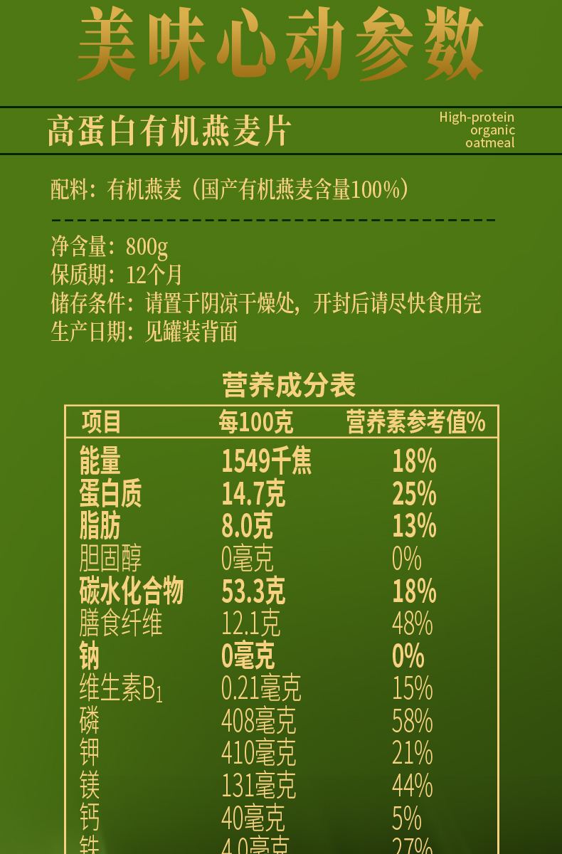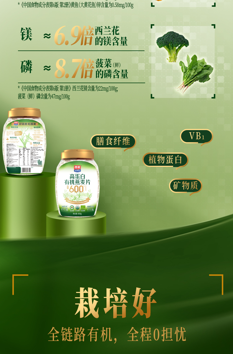 【云仓】西麦 高蛋白有机燕麦片800g