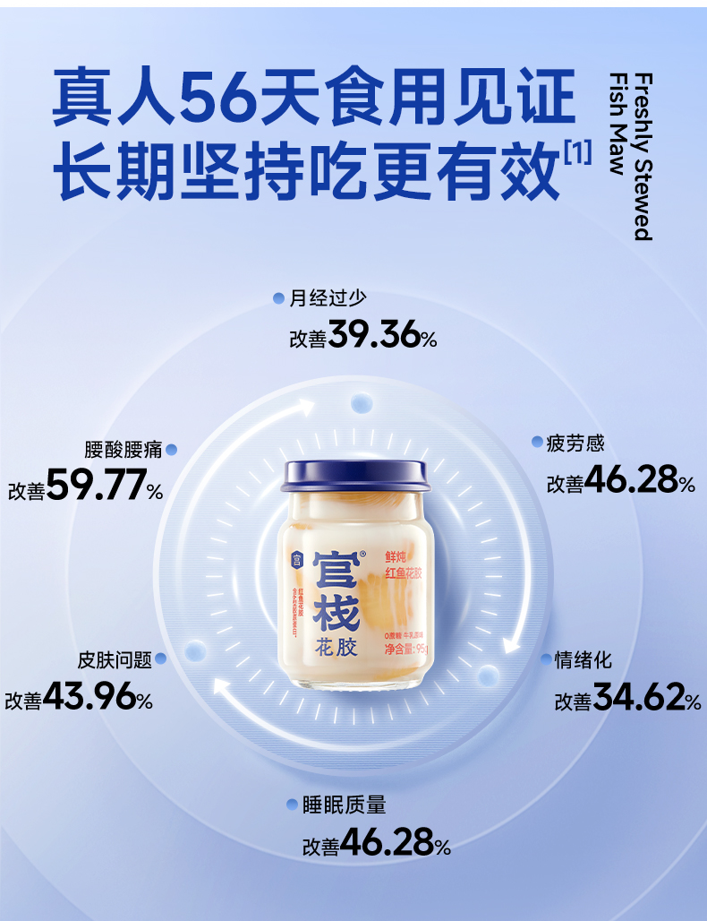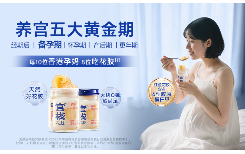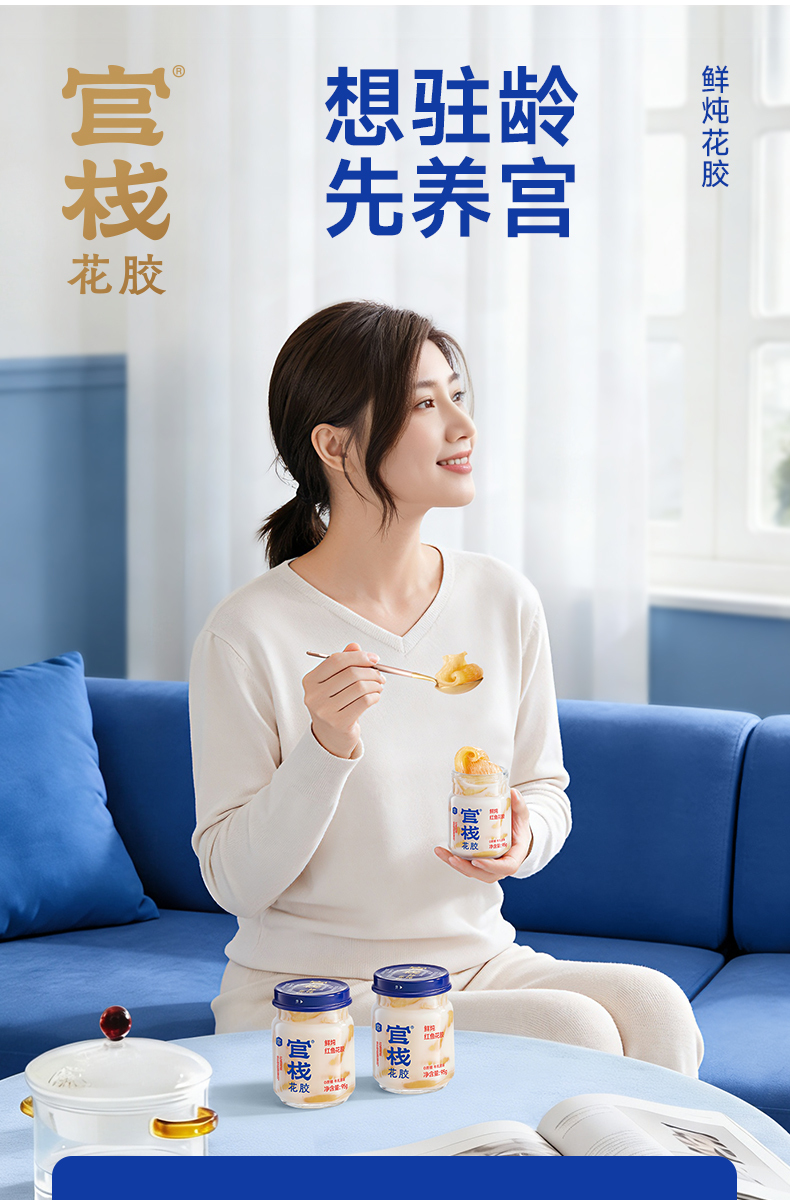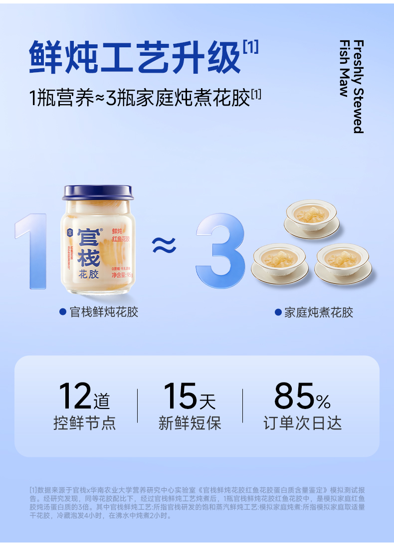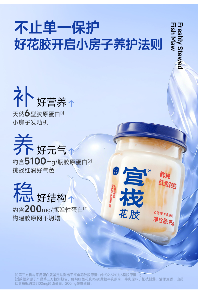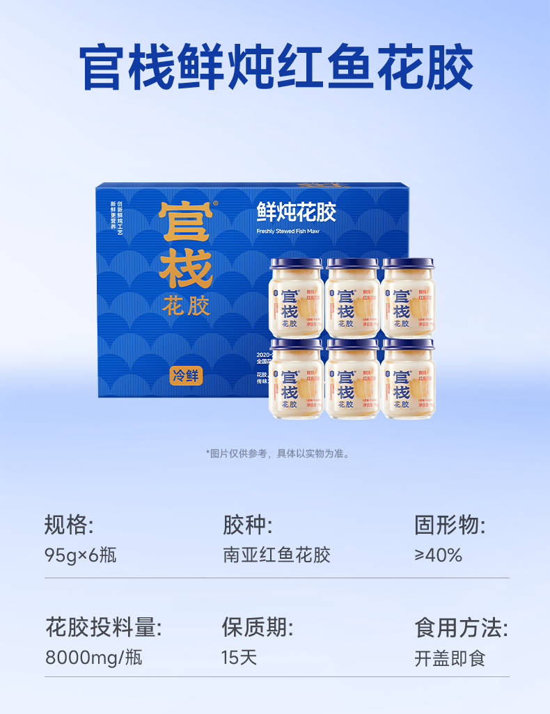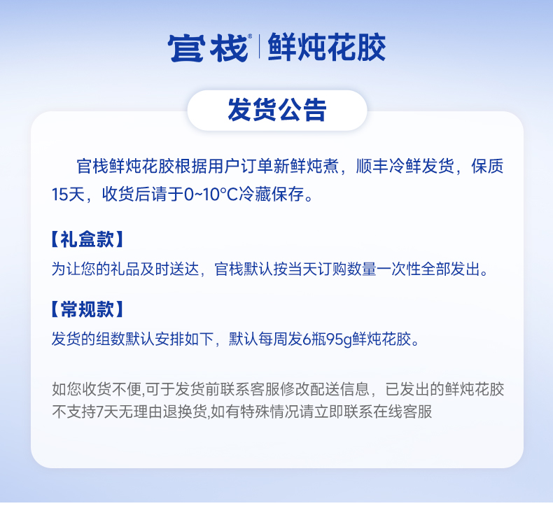 【云仓】官栈 营养原味0蔗糖鲜炖花胶95g*6瓶(顺丰冷链,下单鲜炖)