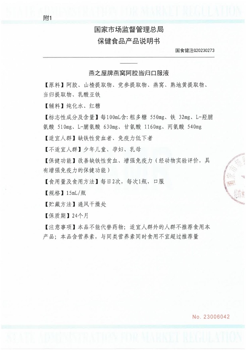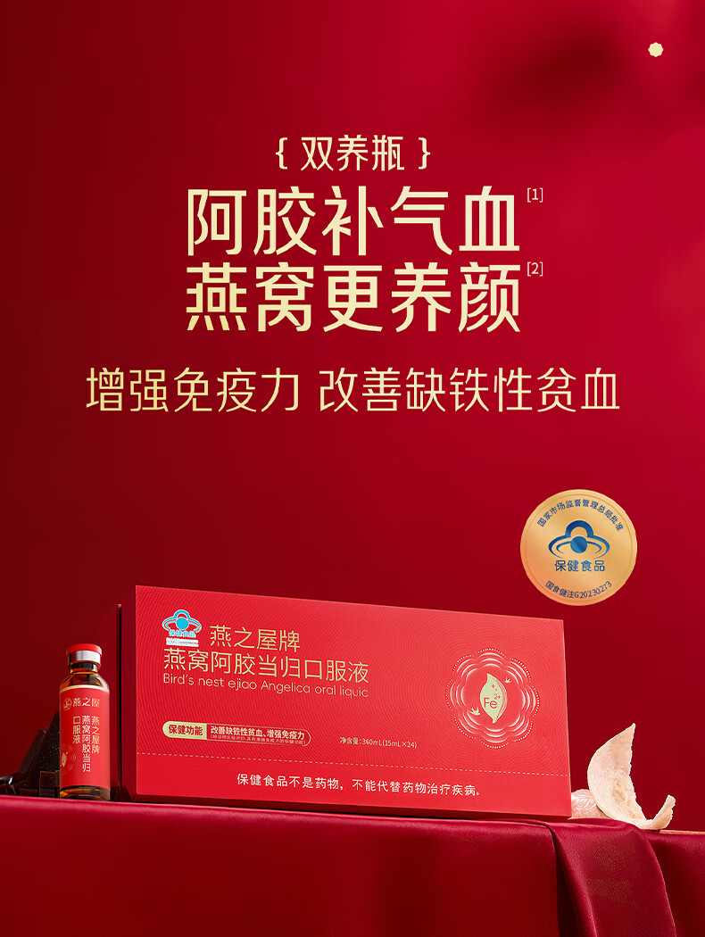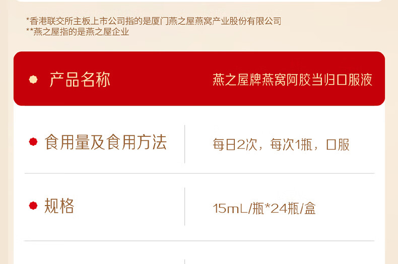 【云仓】燕之屋 燕窝阿胶当归口服液15ml*24支