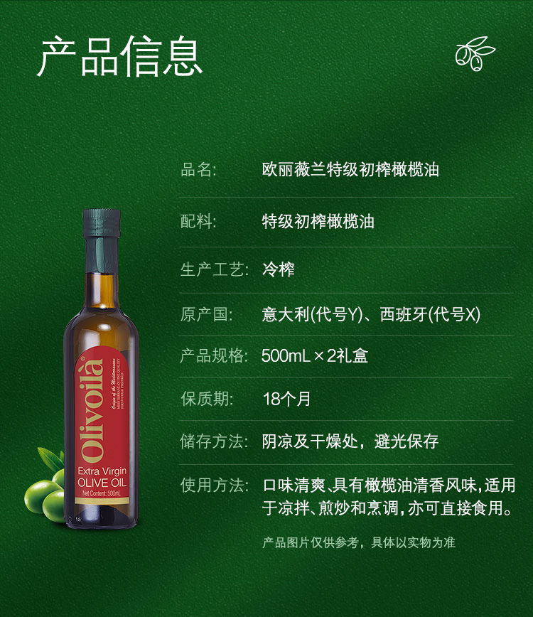 欧丽薇兰特级初榨橄榄油礼盒500ml*2(红标)