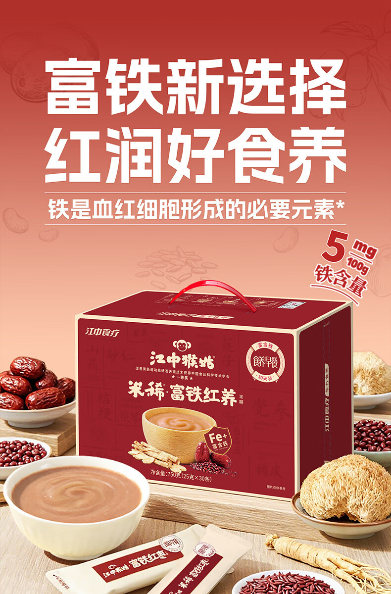 【云仓】江中猴姑 富铁红养米稀750g(25g*30袋)